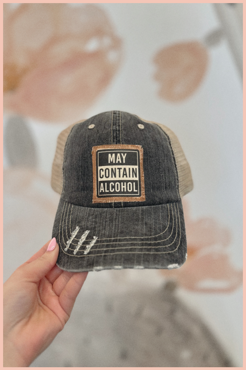 Stay cool and stylish with our May Contain Alcohol Ball Cap. This adjustable hat is perfect for any occasion, with a playful message that's sure to make everyone smile. Stand out and let the fun begin!