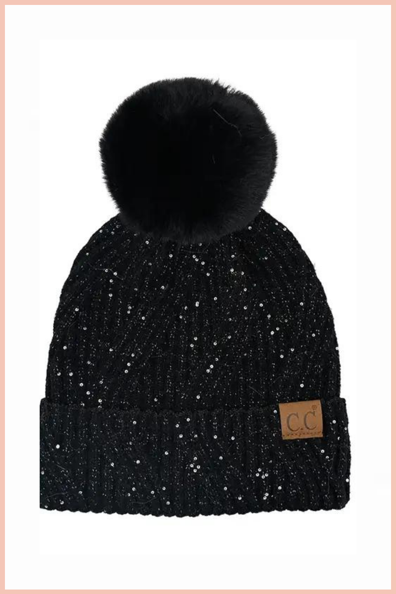 C.C. SEQUIN W/ POM BEANIE | BLACK