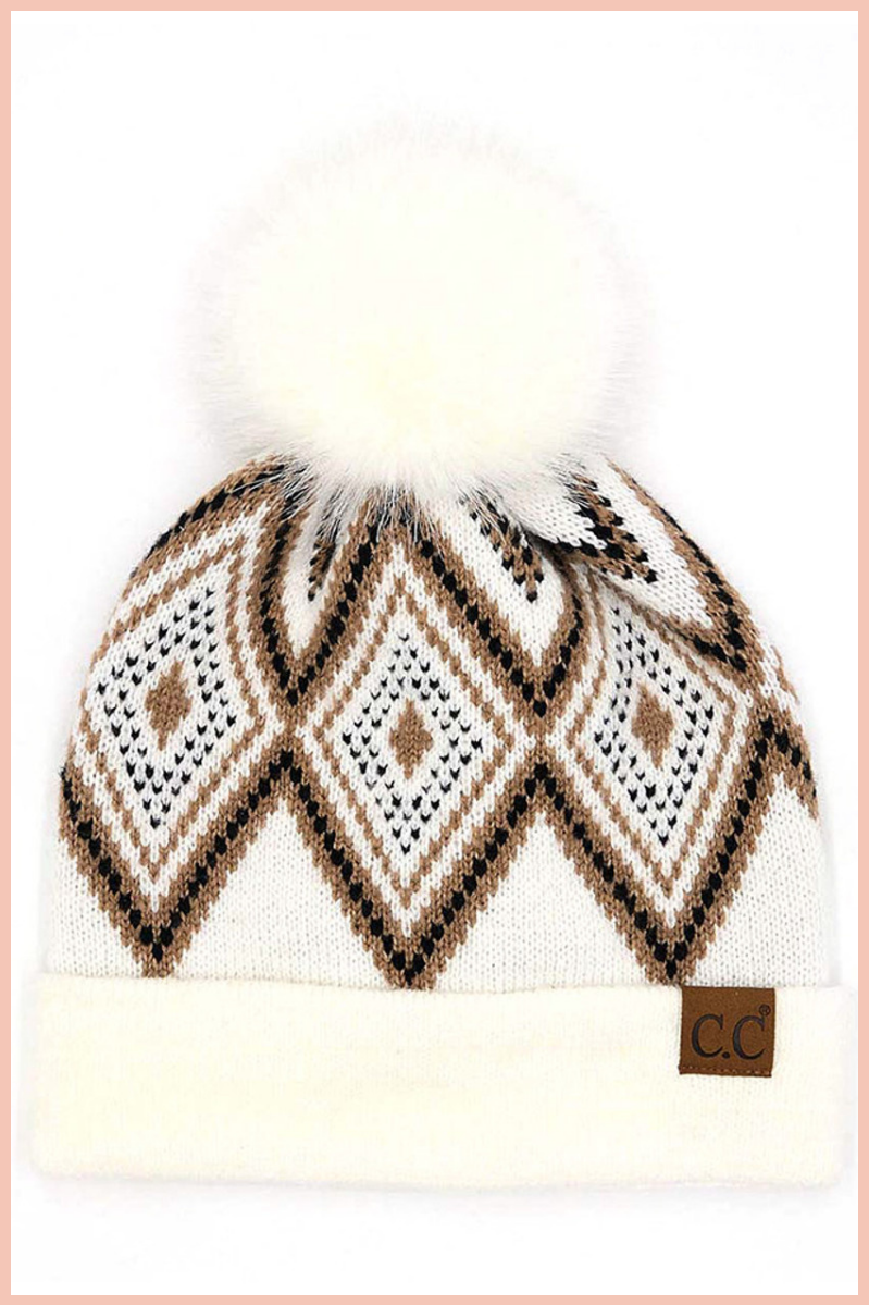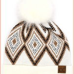 MODERN DIAMOND BEANIE W/ FUR POM POM