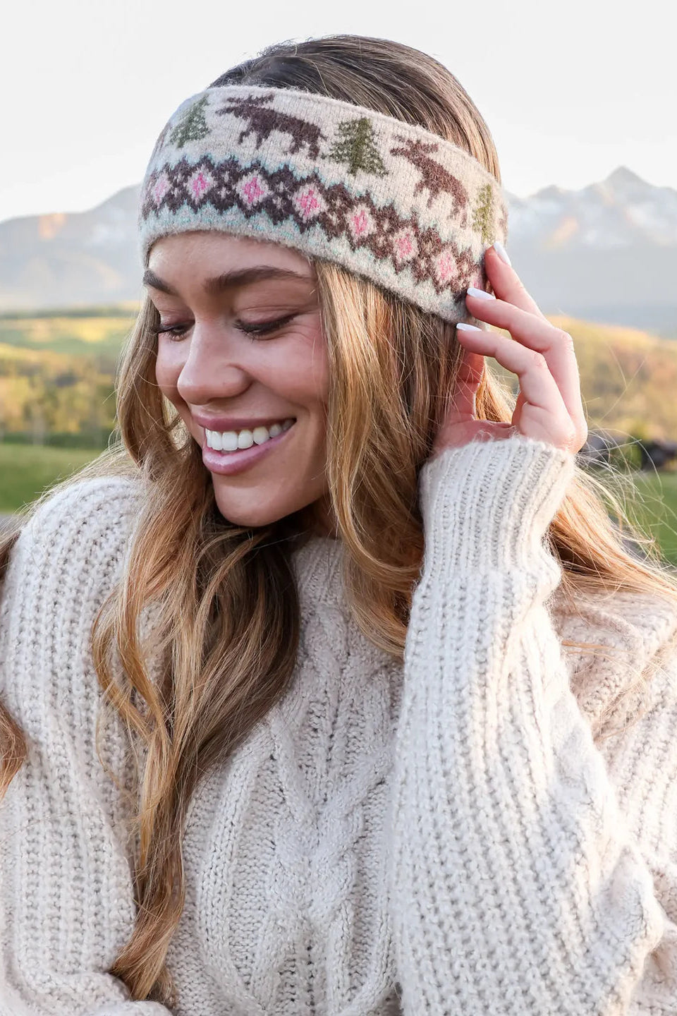Intarsia Head Warmer - Pink Moose | Natural Life