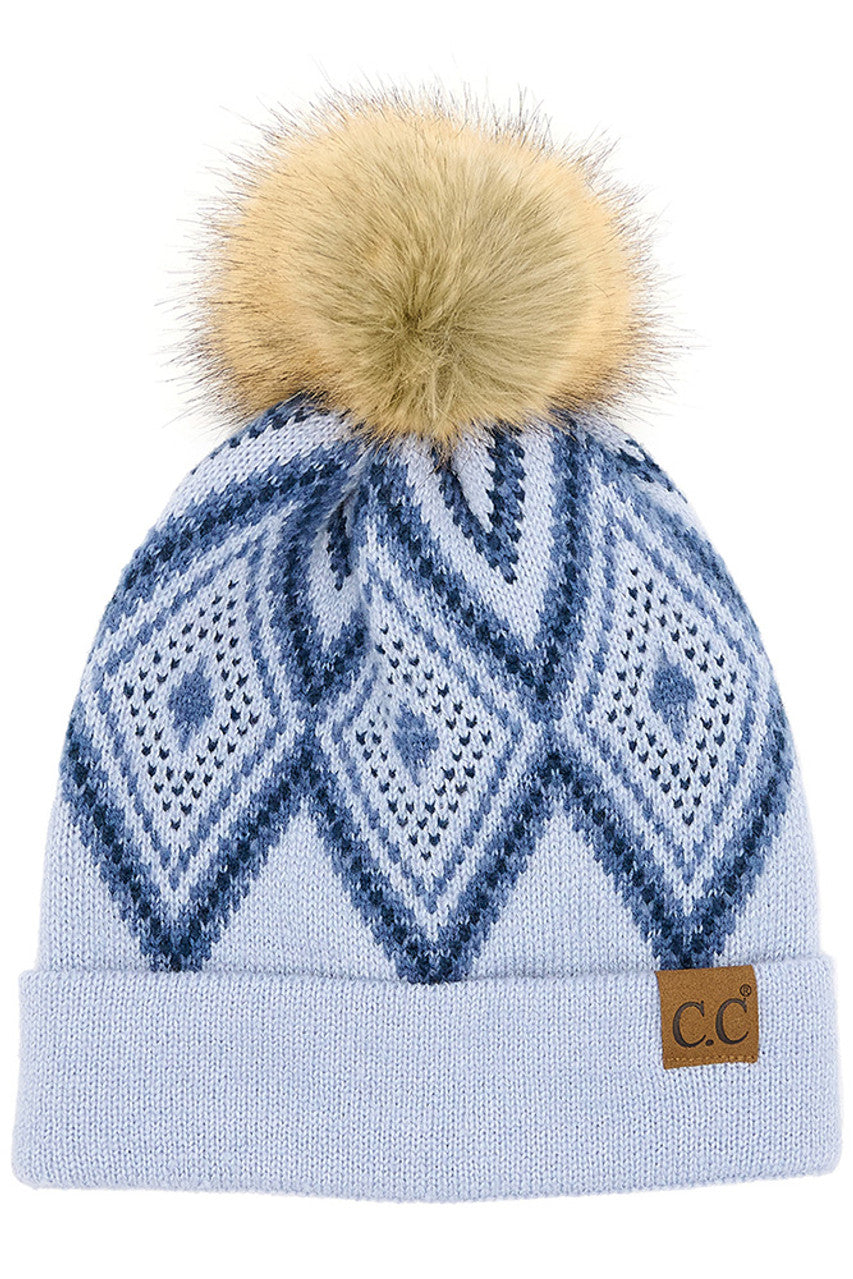 MODERN DIAMOND BEANIE W/ FUR POM POM