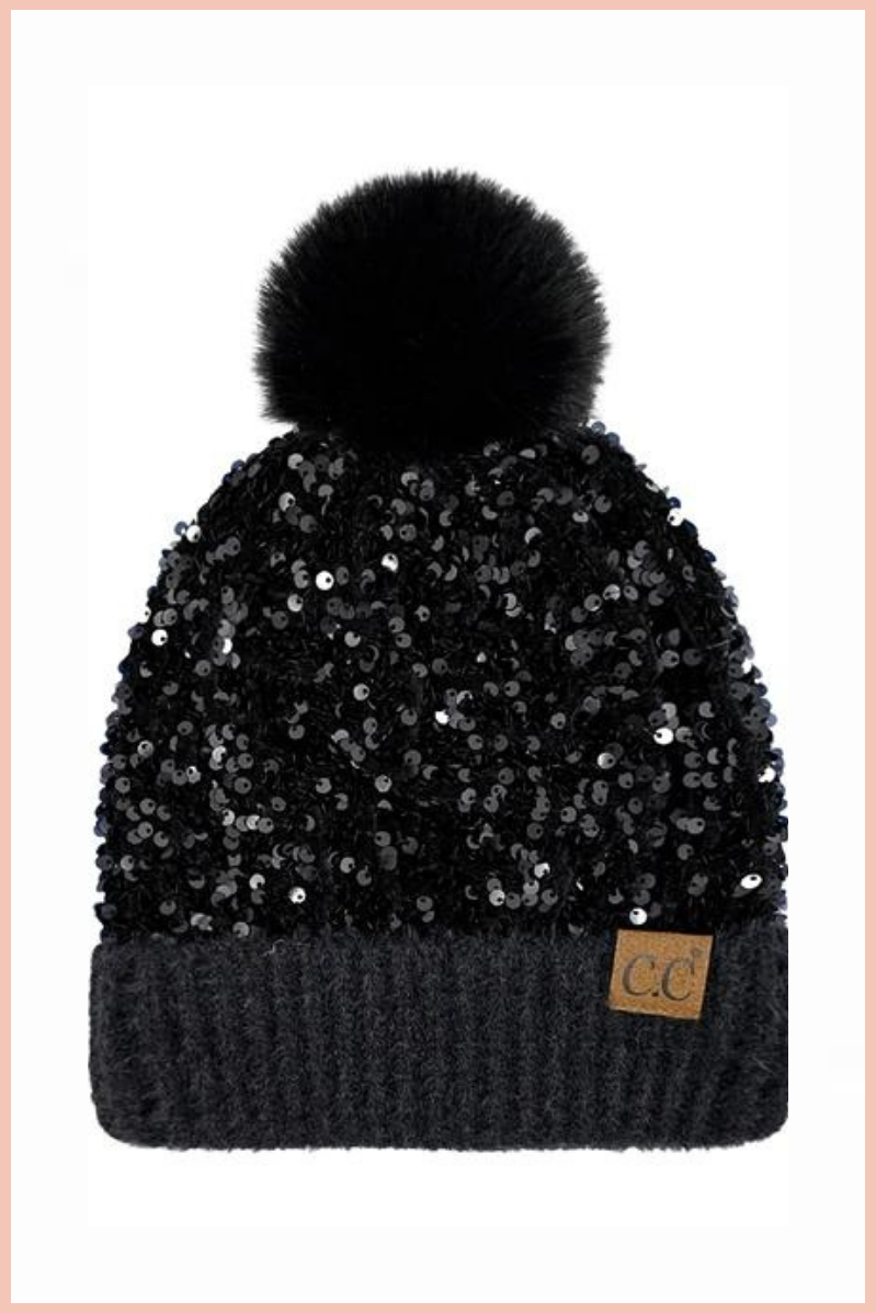 C.C. SEQUIN POM BEANIE | BLACK
