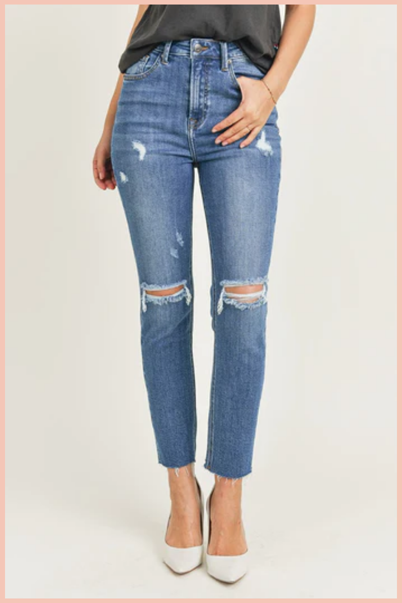 RISEN Vintage Washed Shadow Hem Straight Denim | Medium Wash
