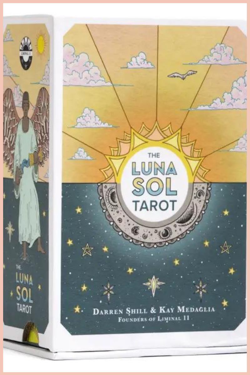 "The LUNA SOL TAROT DECK is a sweet and hopeful tarot deck designed by Mike Medaglia and Darren Shill. With traditional symbolism and a warm color palette, this deck will inspire your intuition and provide memorable readings. Each deck includes a 60-page guidebook for further guidance. Size: 3.5 x 5.25 inches."