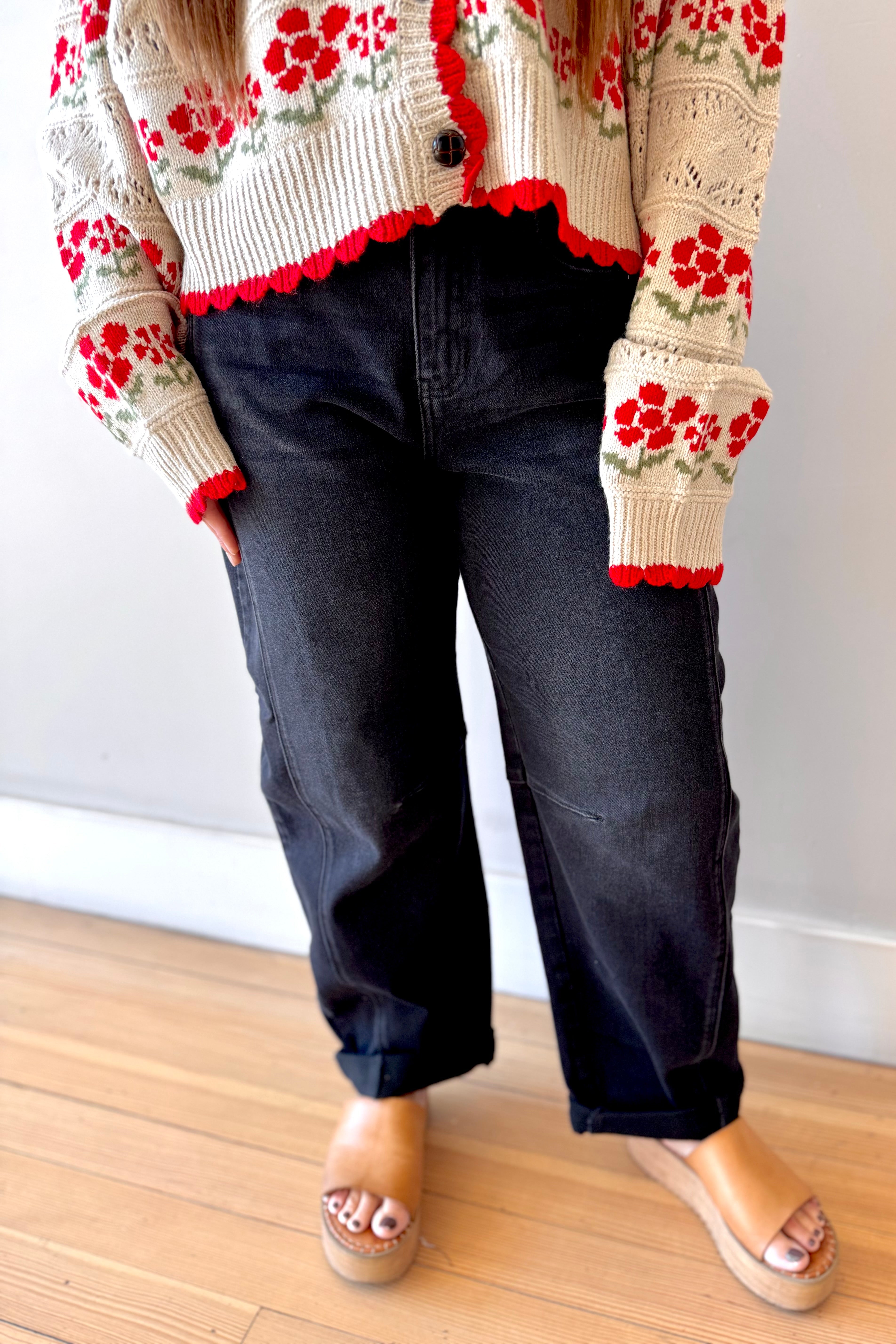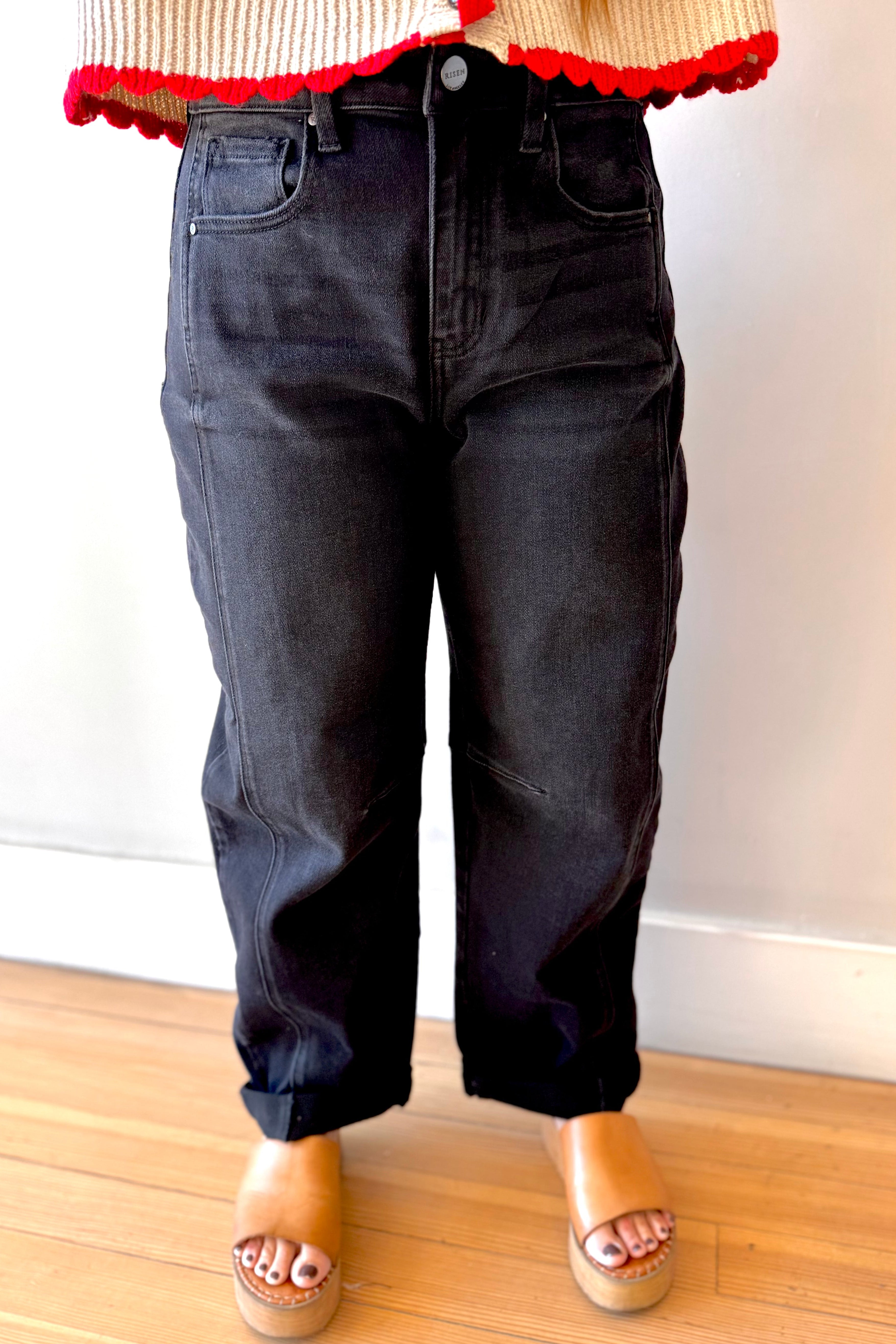 RISEN High Rise Crop Barrel Cuffed Jeans