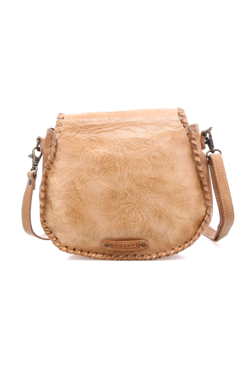 BEDSTU Women's Half Moon Embroidered Leather Crossbody Purse