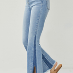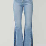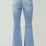 Introducing our RISEN High Rise Flare Denim, designed for a playful and fun look. With a medium wash and side shadow seam, these jeans will have you standing out and feeling confident all day long. These need to live in your closet!