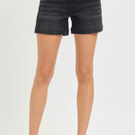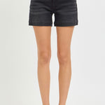 High Rise Mid Length Cuffed Hem Shorts | J21 by RISEN