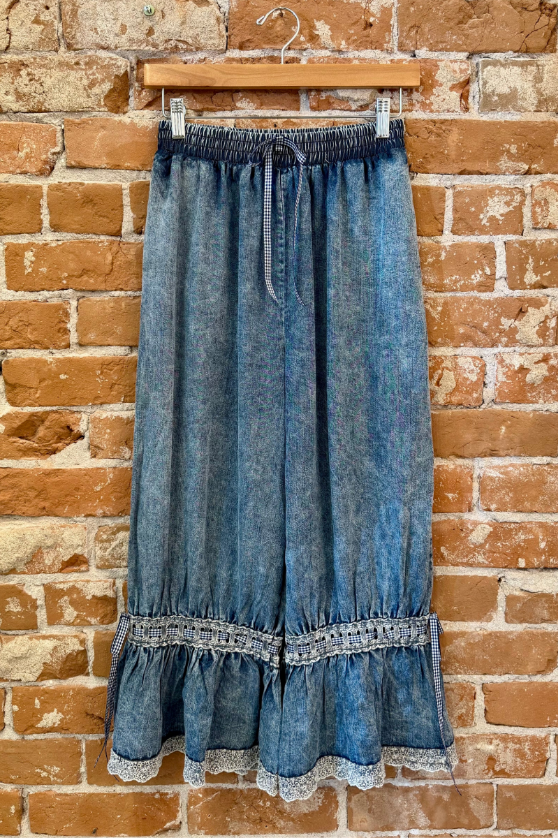 Playful, feminine, and effortlessly cute, the Washed Ruffle Hem Bottoms with Bow Detail bring a charming touch to your everyday styling. Designed with a soft washed finish, these bottoms feature delicate bow accents and a ruffle hem that adds movement and boutique-inspired detail.