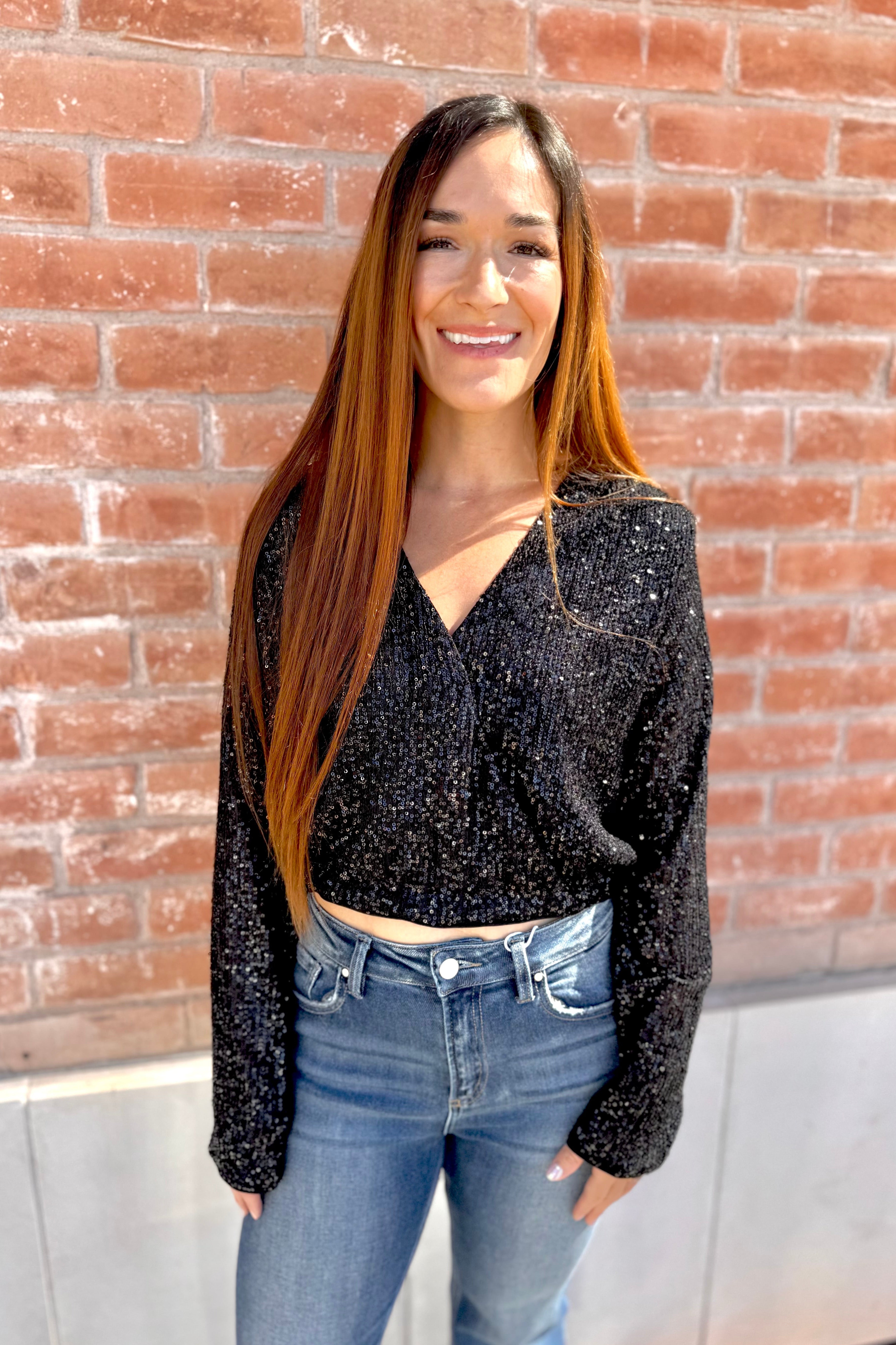 Sparkle and shine in our Long Sleeve Sequin Crop Top! Available in champagne and black, this top is perfect for your next night out. Effortlessly glamorous with long sleeves for added warmth, it's sure to turn heads. So go ahead and glimmer, girl!