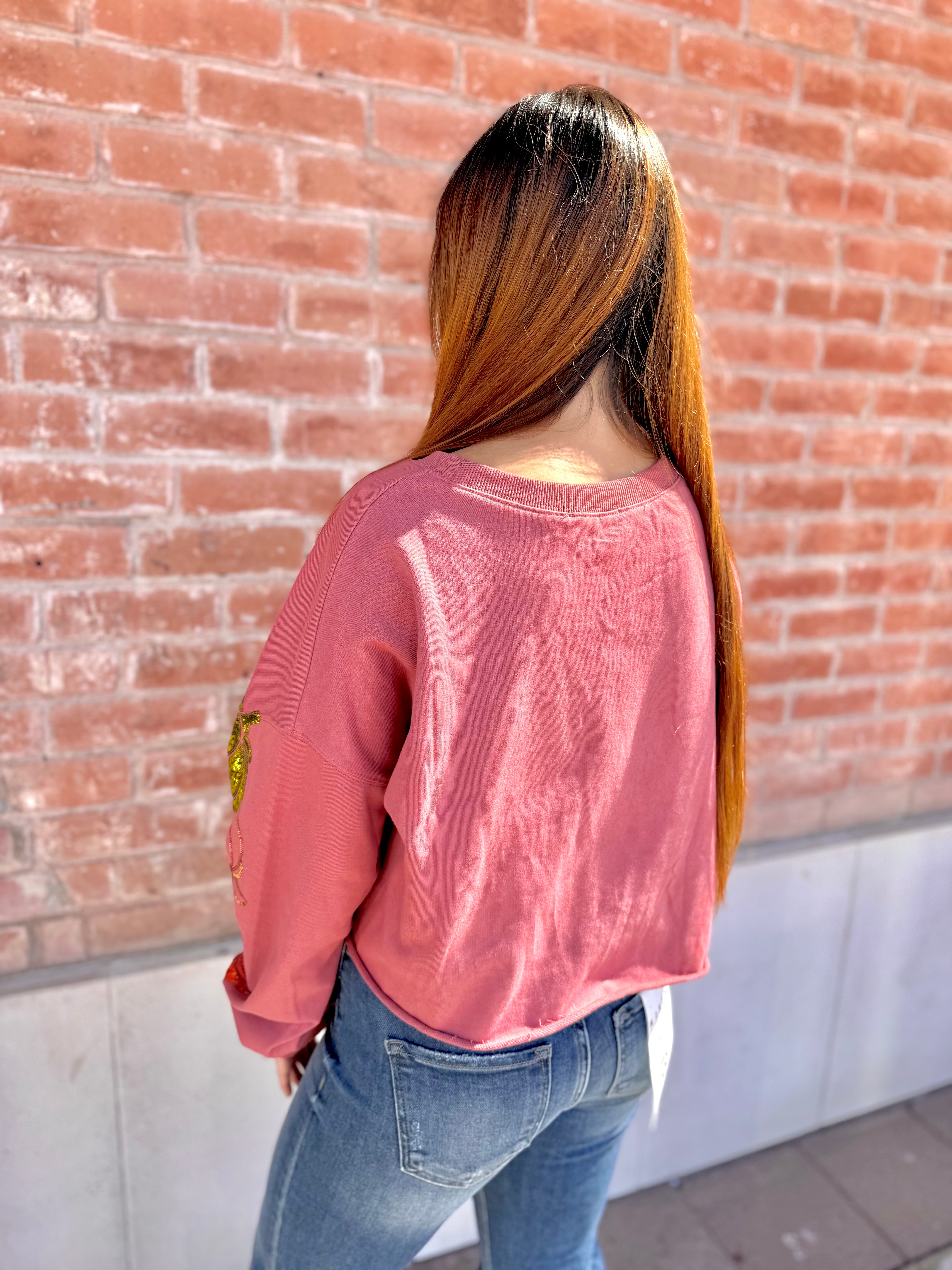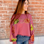 Pumpkin Sequin Cropped Longsleeve Top