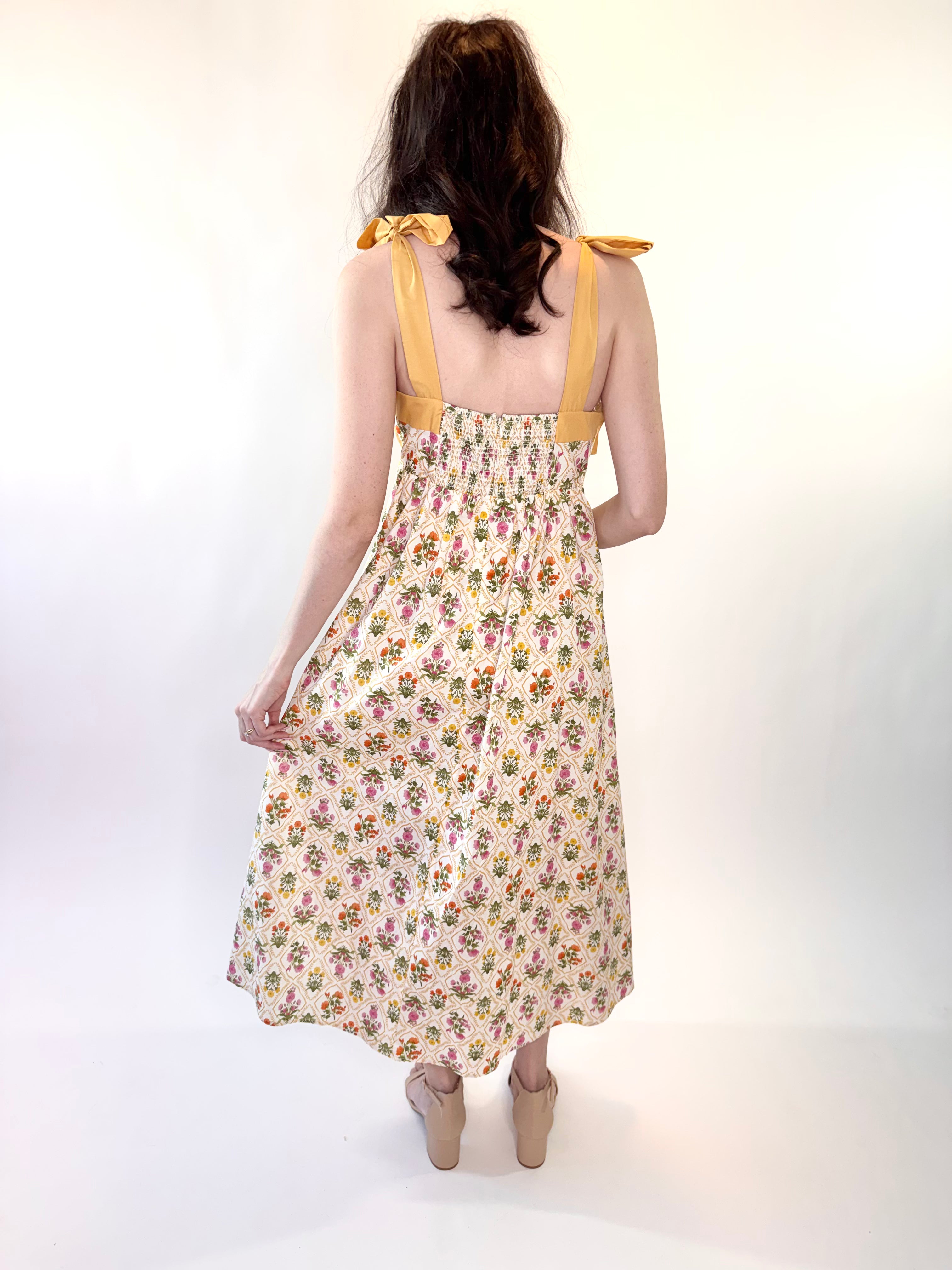 The smocked back gives a flexible, easy fit, while the lightweight cotton fabric keeps it breathable for warm days. And yes… it has side pockets, because we love a pretty dress that’s also practical.