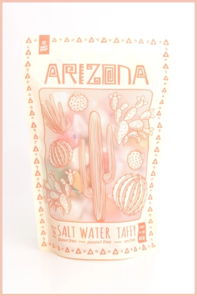 Indulge in a taste of the southwest with our Arizona Taffy Bag! Experience the unique blend of flavors including Chili Mango Madness and Prickly Pear, all guaranteed to be perfectly soft and fresh. Don't let the prickly exterior fool you, this taffy is a sweet treat worth trying.