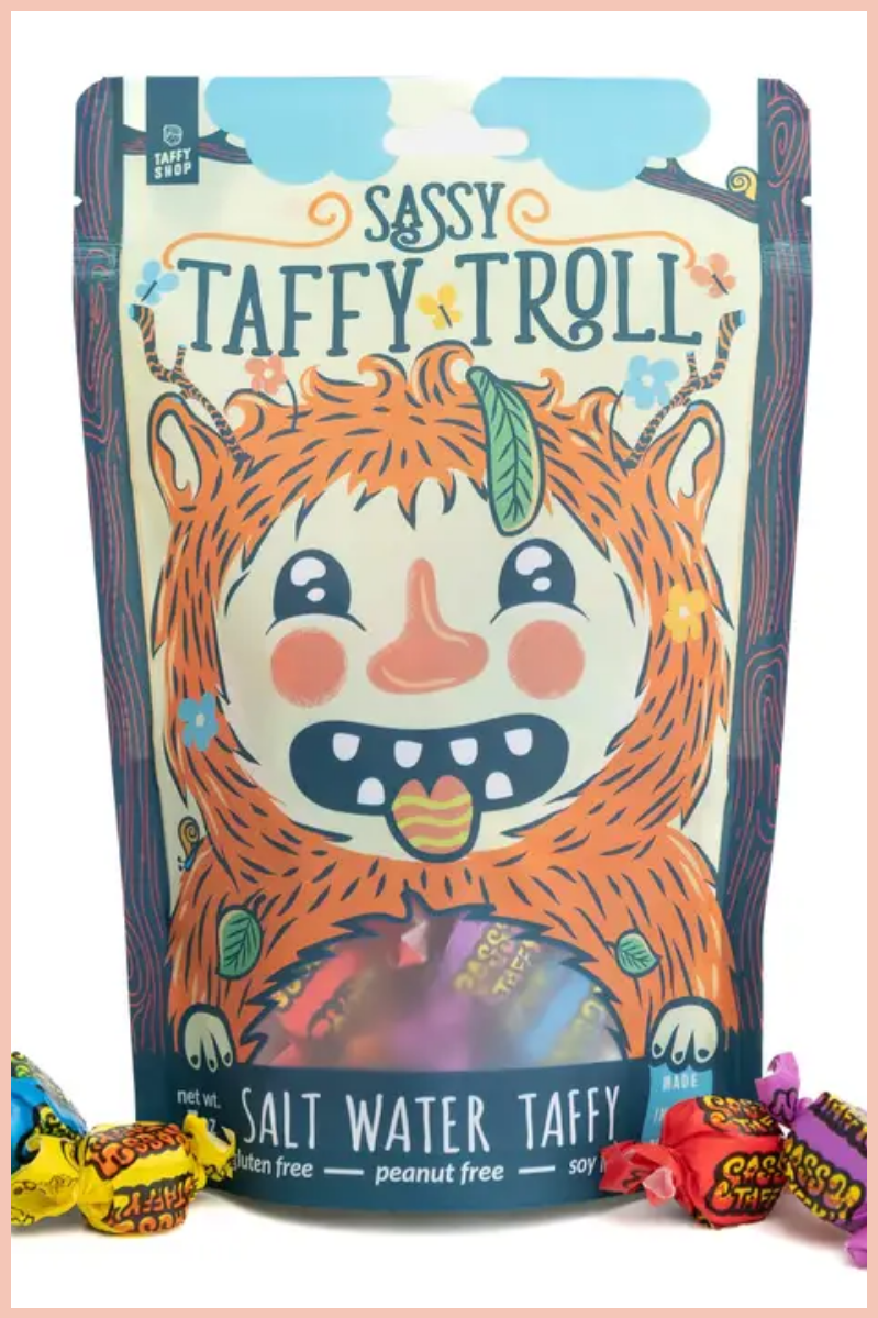 Discover the tangy and tart sweetness of Sassy Taffy Troll Bag! Our pesky taffy troll couldn't resist our delicious fruit taffy and created a sassy twist on our classic flavors. Bite into Sassy Orange, Apple, Cherry, Grape, Lemon, and Raspberry for a sassy treat sure to make you smile.