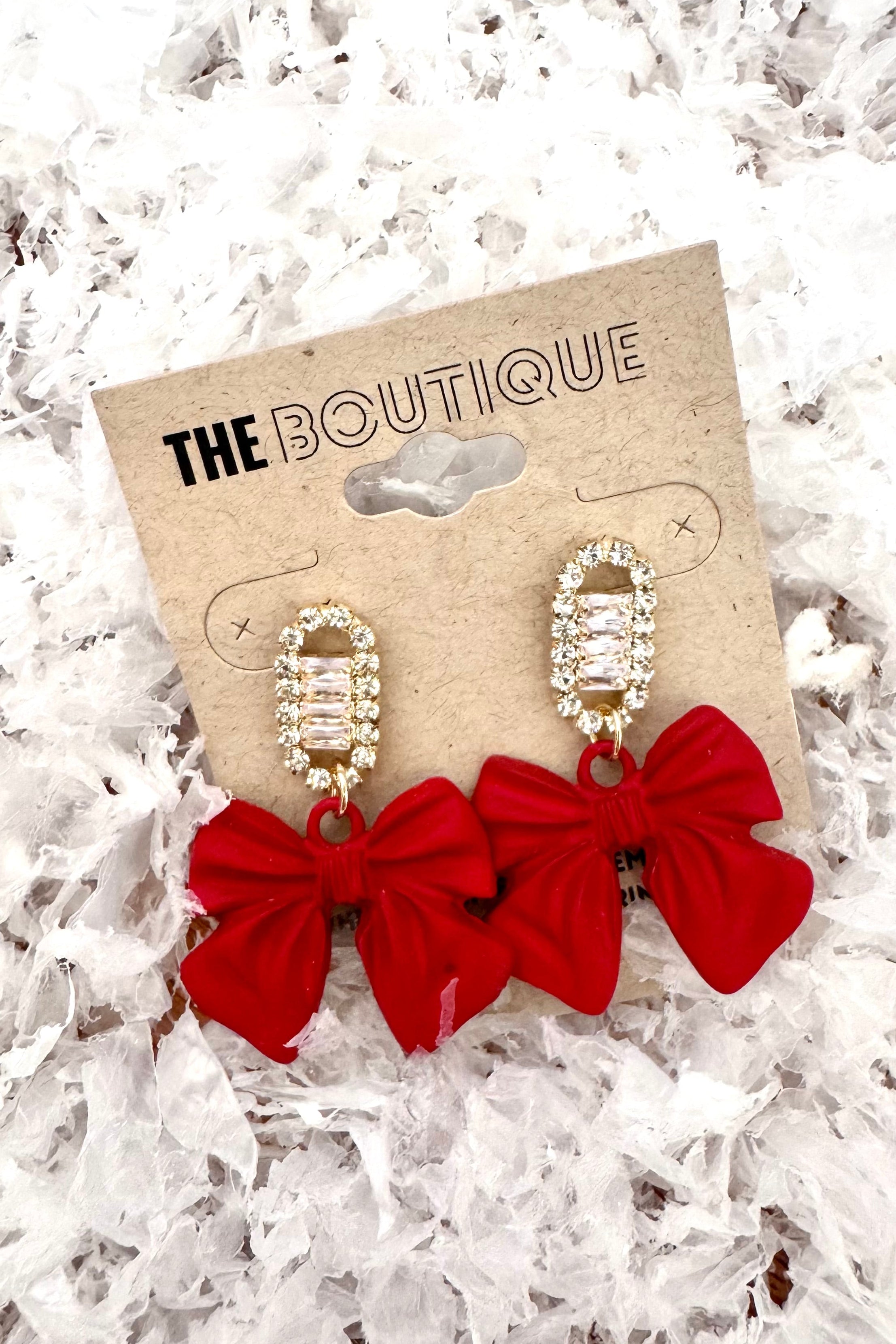 Add some festive flair to your holiday outfits with our Christmas Red Bow Dangle Earrings! These playful earrings feature a cute red bow design that will make your outfit stand out. Perfect for adding some fun to your holiday party look.