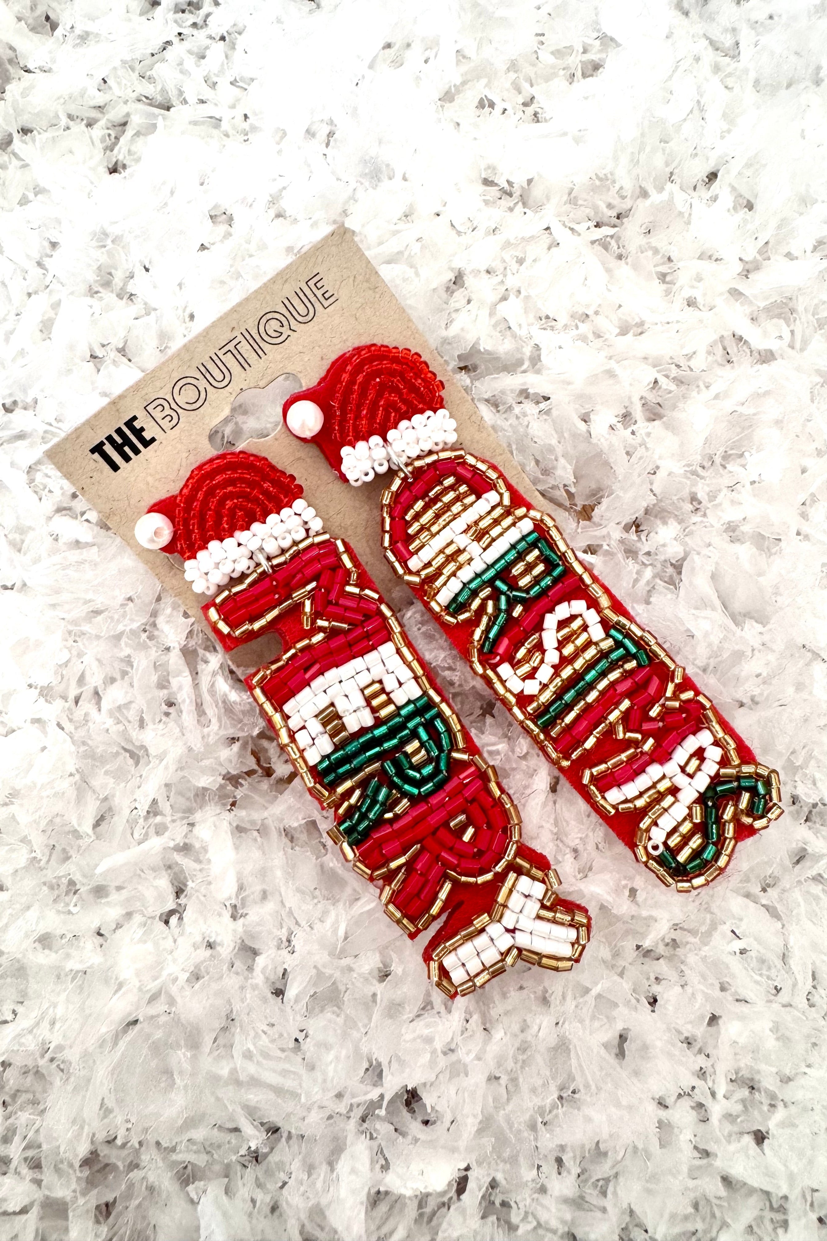 Get into the festive spirit with our Merry Christmas Seedbead Earrings! These earrings are adorned with delicate beads in traditional holiday colors, making them the perfect accessory for any holiday event. Spread some cheer with these fun and playful earrings.