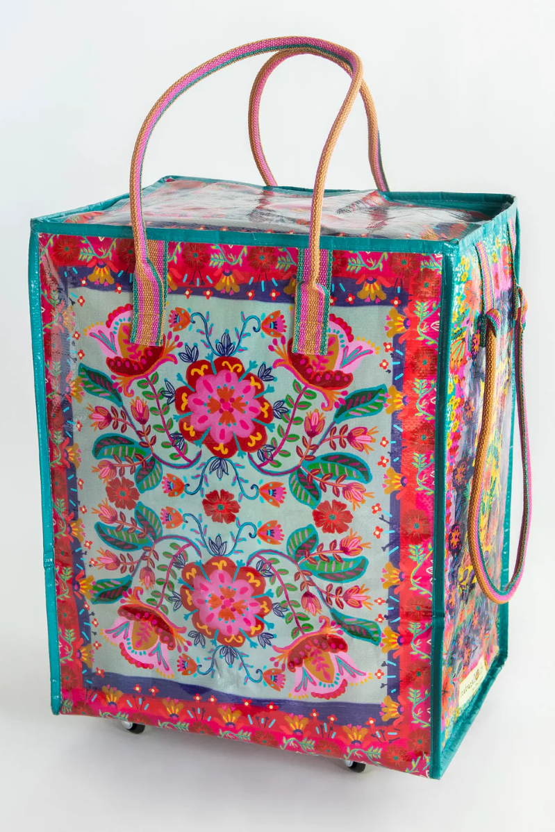 Rolling Tote Bag - Red Folk Flower | Natural Life