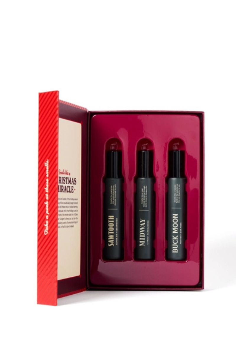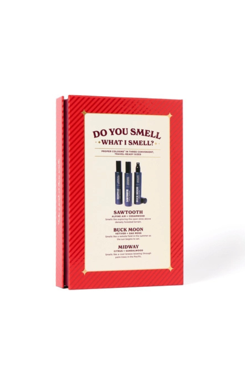The Merry Little Sniffmas Cologne Gift Set includes: Sawtooth Cologne Buck Moon Cologne Midway Cologne