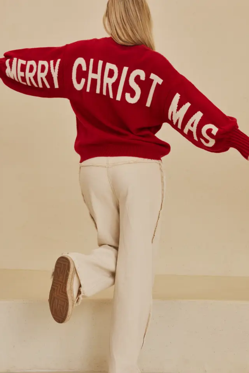 Get into the holiday spirit in the comfiest way with our Oversize Christmas Sweater with Lettering. This festive knit features bold holiday lettering on a soft, slouchy oversized silhouette that feels like a warm hug. It’s the perfect mix of playful and cozy — ideal for holiday photos, festive outings, or snuggling up by the tree with cocoa in hand.