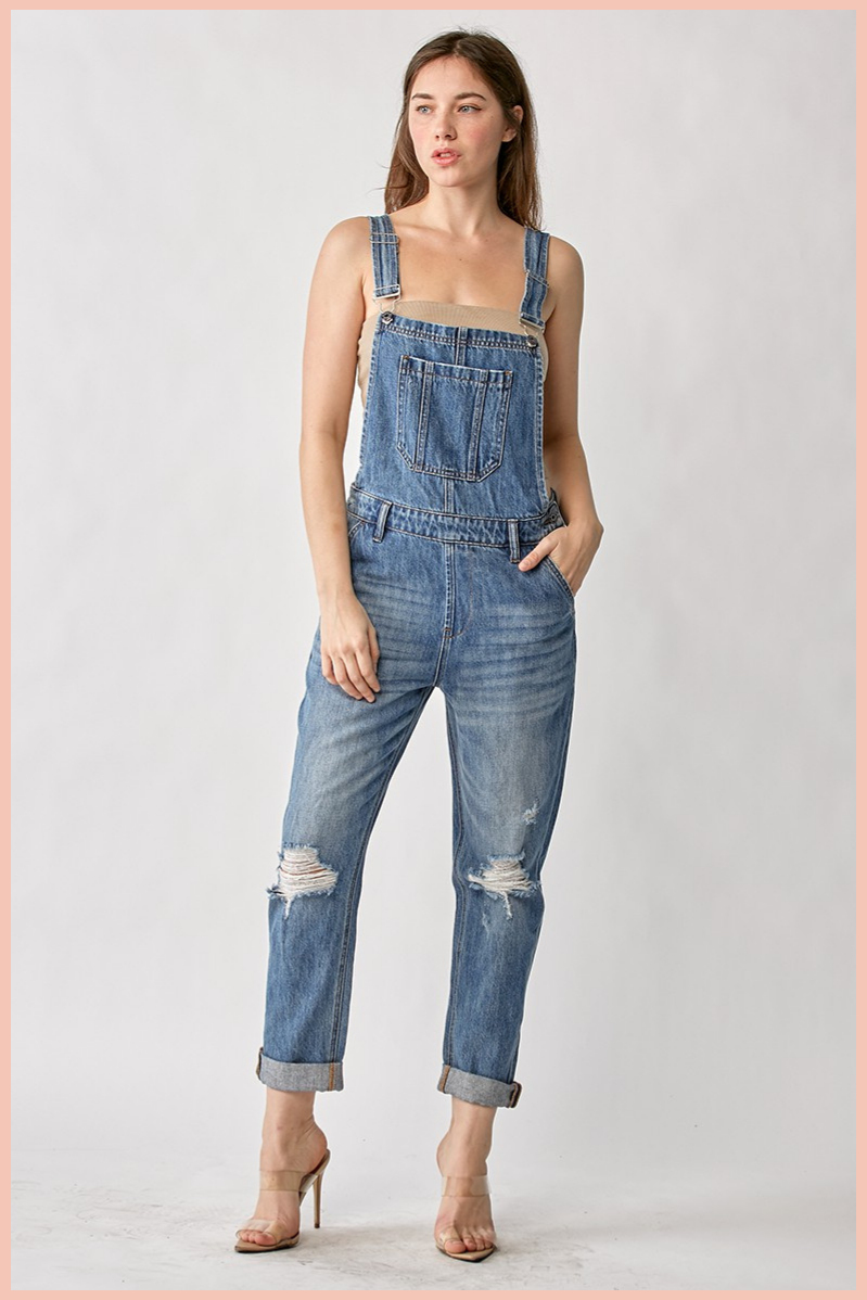 RISEN Distressed Relaxed Fit Overall Denim | Final Sale