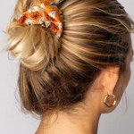 Add a splash of color and charm to your hairstyle with the Burnt Orange Crochet Scrunchie. Crafted for comfort and style, it effortlessly brightens your updo while keeping your hair snug. Perfect for adding a playful, cozy touch to any look!