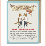 This isn't your ordinary greeting card: your bestie will love this affirming message of unconditional support, plus the added bonus of two foxes rocking harem pants! Send a bit of magical encouragement and let them know the universe (and you!) have got their back!