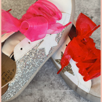 Get ready to add some whimsy to your shoe game with our CHIFFON RIBBON SHOELACES! These 4CM laces will bring a touch of charm and playfulness to any shoe. Perfect for the fashion-forward and those who don't take themselves too seriously.