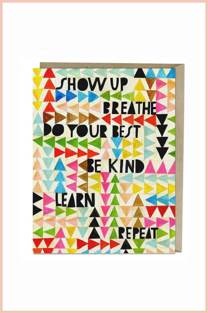 Hey, life isn't always easy. But with this awesome to-do list from Lisa Congdon, you'll have the tools you need to get through it! This unique card shows that even when things are hard, taking a deep breath can make all the difference. Show up and breathe: It's your ticket to a simpler, calmer life!