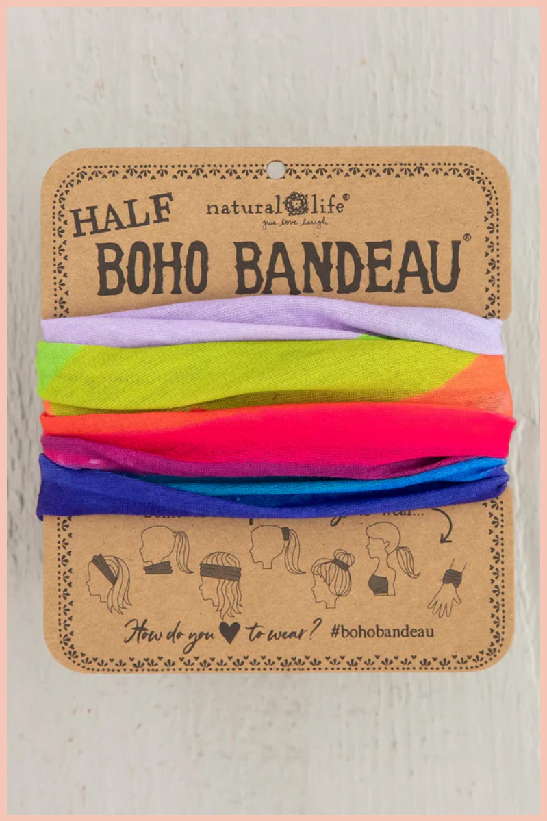Add some versatility to your wardrobe with our Half Boho Bandeau! This Bandeau can be worn in multiple ways, such as a headband, scrunchie, or bracelet. Be creative and show us your #bohobandeau style!