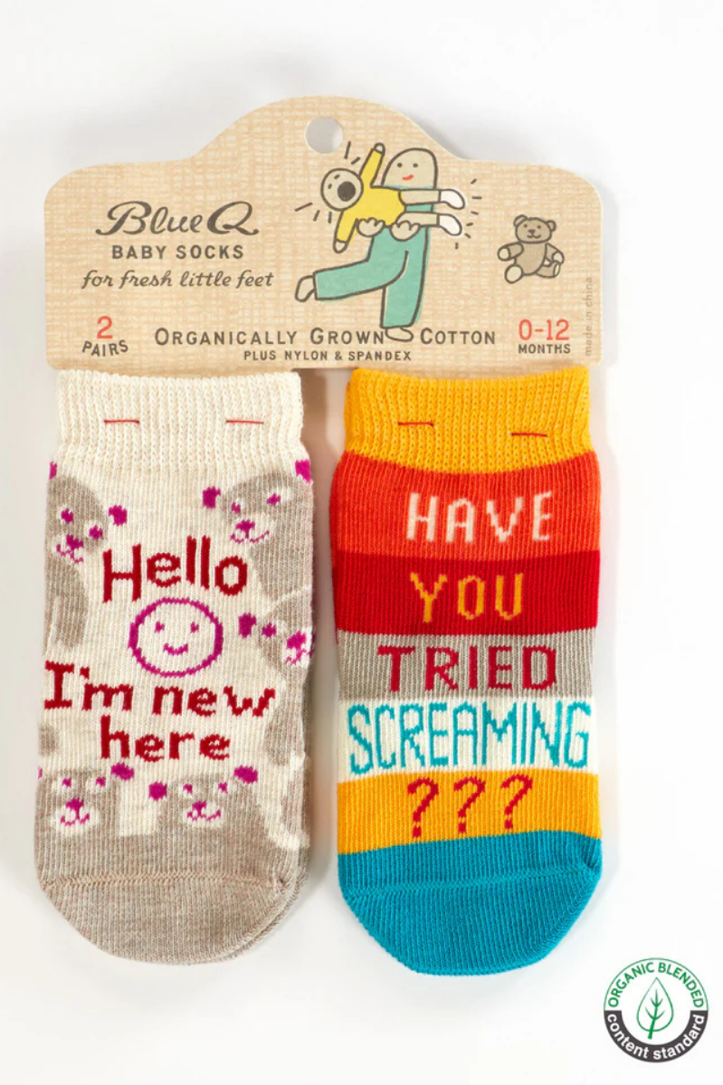 Hello I'm New Here/ Have You Ever Tried Screaming??? Baby Socks
