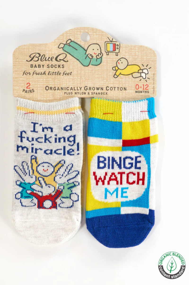 I'm A Fucking Miracle!/ Binge Watch Me Baby Socks