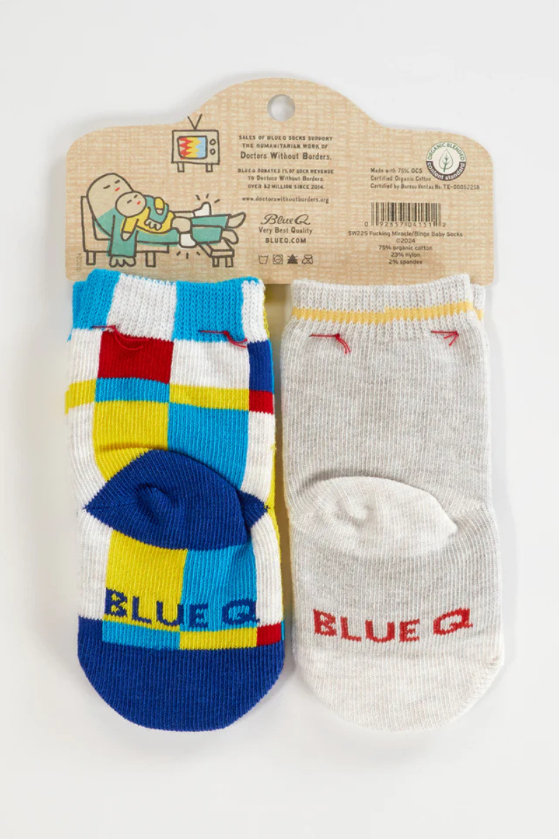 - 1% of the sale of all Blue Q socks supports the humanitarian work of Doctors Without Borders. Click here to read more.