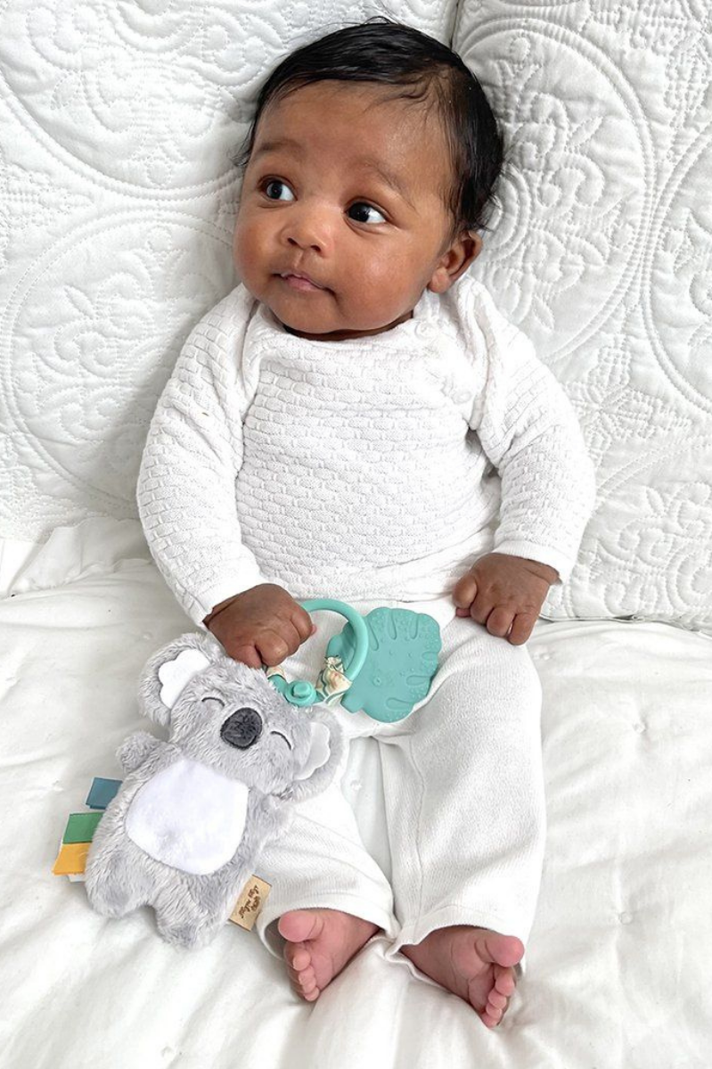 Connected to a handy dandy ring, baby can easily snuggle up to their plush lovey pal while soothing their gums on the attached teether. Plus, each character features entertaining crinkle sounds & textured ribbons for a playful pick-me-up!