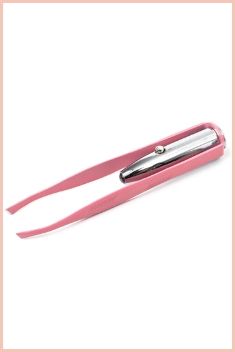 Groom with precision and a little light-heartedness thanks to these LIGHT UP TWEEZERS - featuring an ultra bright LED and precision grip. Say goodbye to pesky hairs, hang nails, and lash sets in no time (with minimal wincing). Batteries included for your convenience.