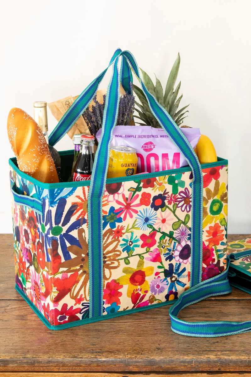 Make errands a breeze and add a splash of fun with this Reusable Grocery Tote! Its super sturdy design handles groceries, supplies, packages—anything you need to carry. When you're done, simply fold it down for convenient storage. Say goodbye to bulky bags and hello to easy, playful shopping!