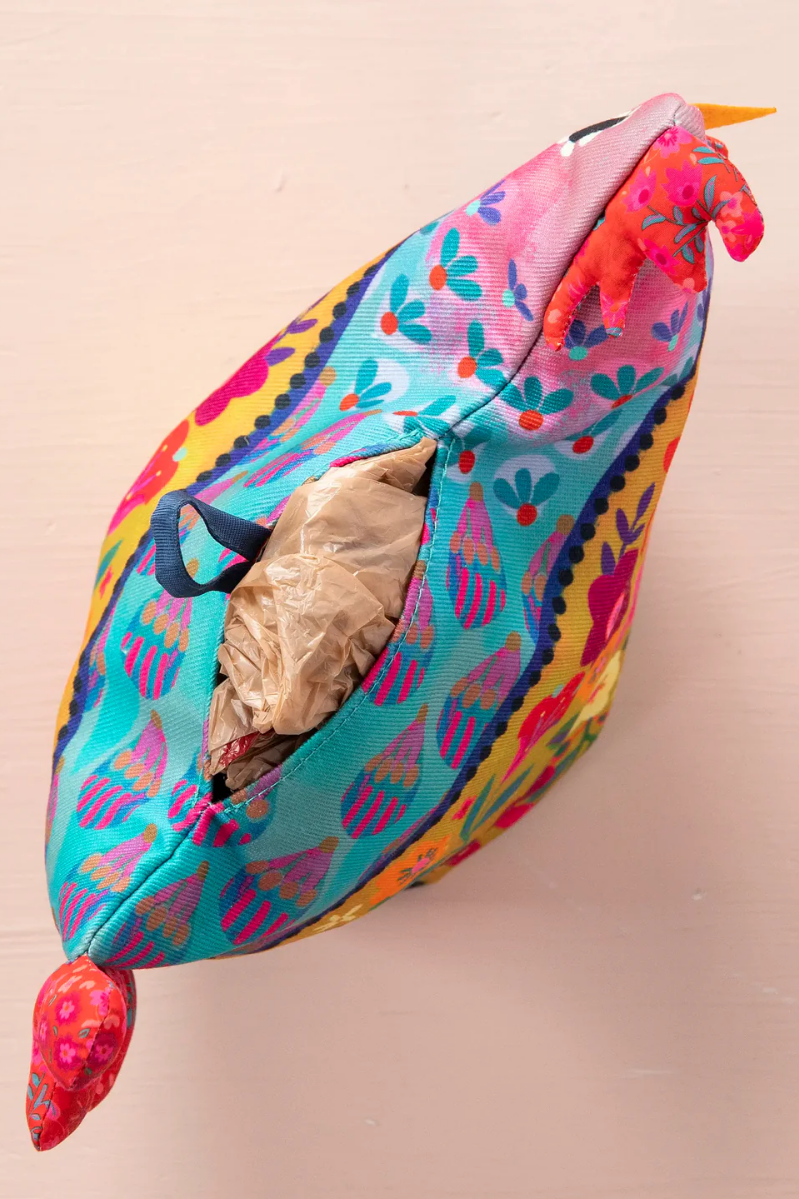 Keep your grocery bags neatly stored and add a dash of whimsy with this adorable chicken-shaped holder! Designed with handy top and bottom openings, it makes grabbing or stashing bags quick and easy. Plus, the loop lets you hang it anywhere for easy access. With a charming double-sided print, this holder brings both function and fun to your kitchen space.