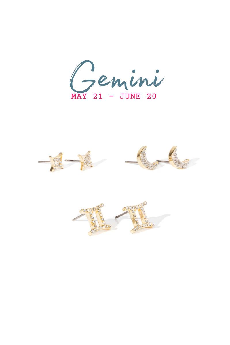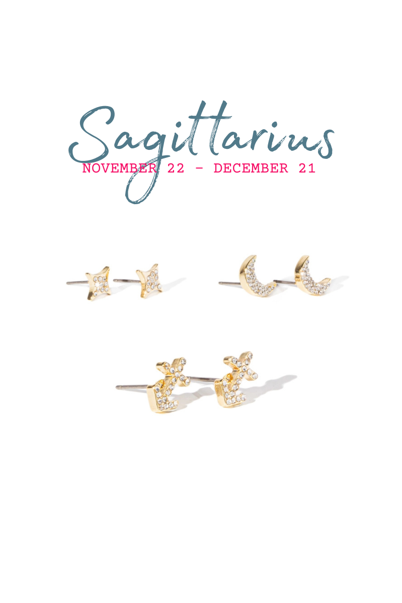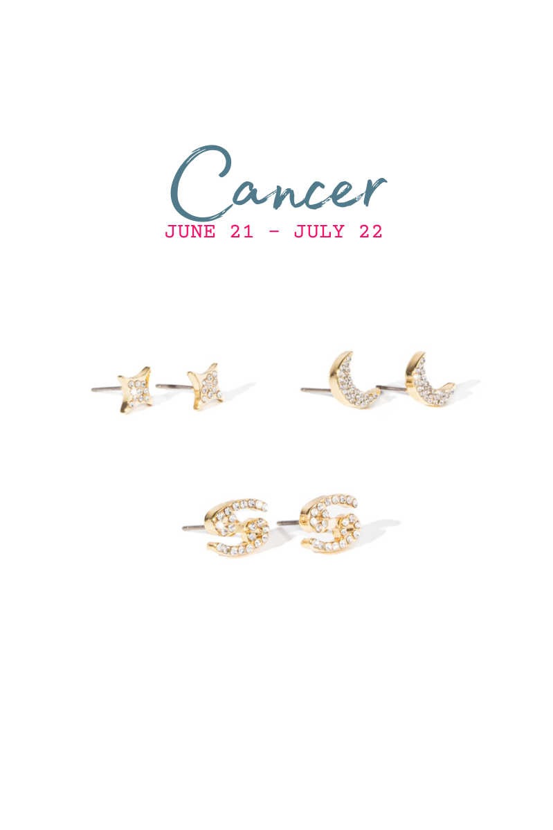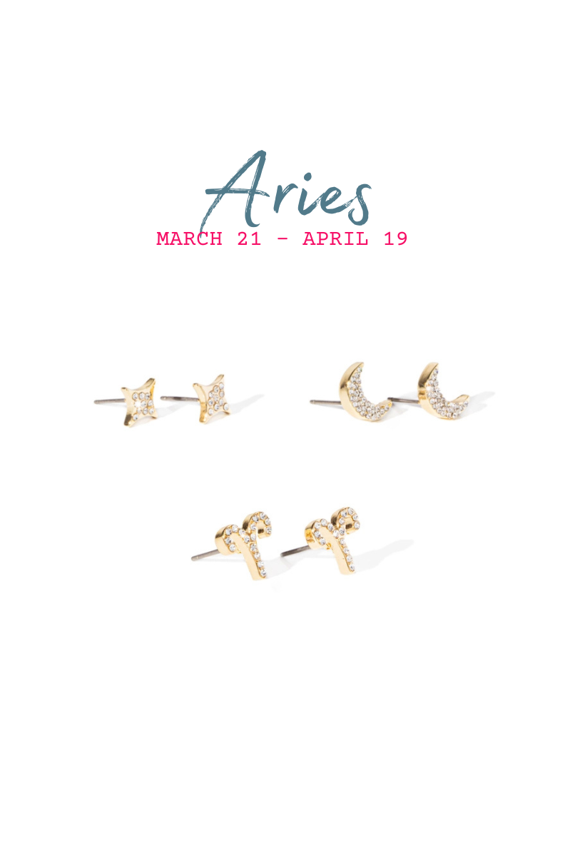 Bring out your best qualities with Star Sign mix and match earring stacks! Each trio features a pair of zodiac signs, stars and crescent moons made with high-quality, nickel-free metals and sparkling crystal inlay. The perfect self-purchase or birthday gift!