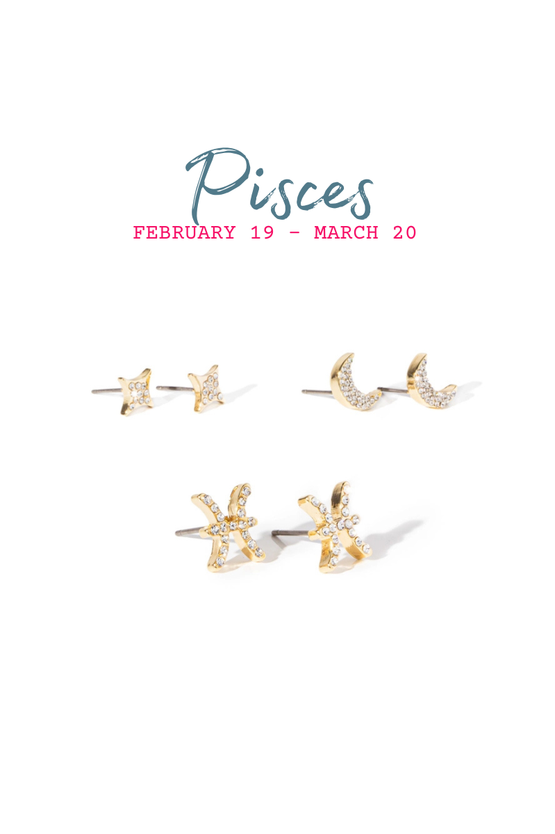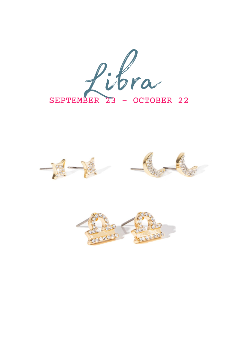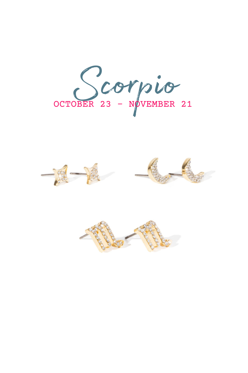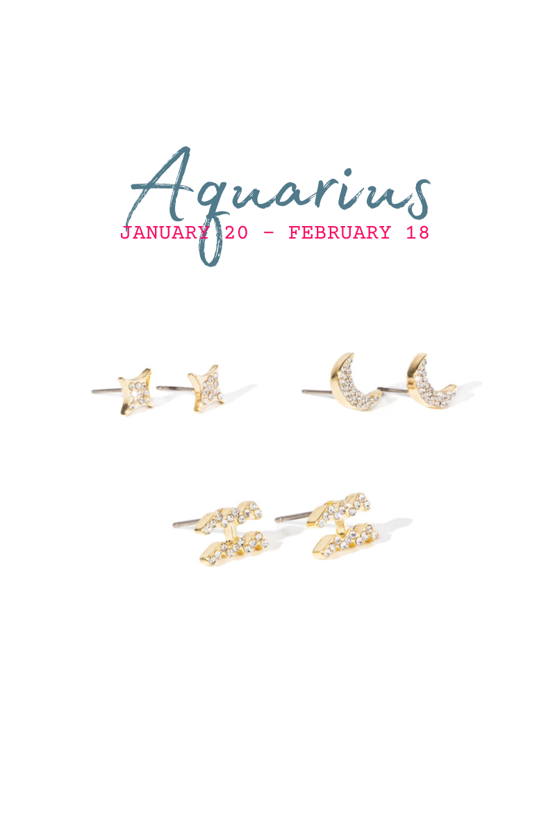 Bring out your best qualities with Star Sign mix and match earring stacks! Each trio features a pair of zodiac signs, stars and crescent moons made with high-quality, nickel-free metals and sparkling crystal inlay. The perfect self-purchase or birthday gift!