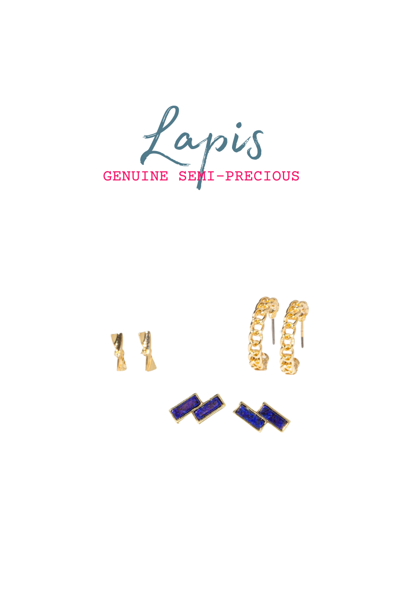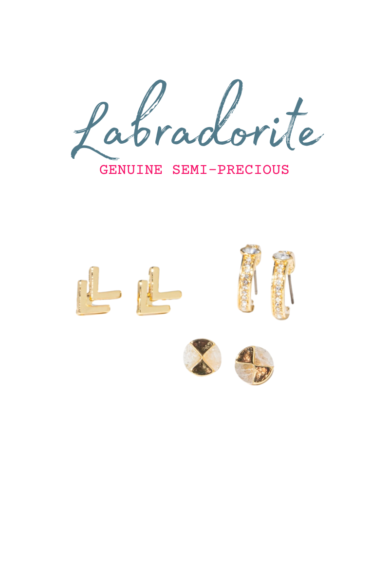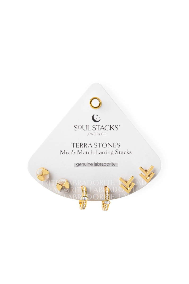 Designed with high-quality, nickel-free metals, each earring trio features a genuine semi-precious stone pair and two pairs of gold-tone accent styles. Each stone in the Terra Collection is chosen for its unique energies and made super giftable with fun messaging on each card.