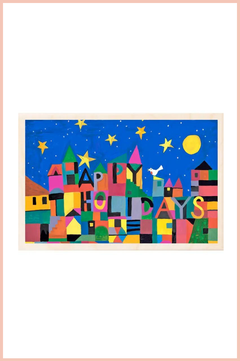 HAPPY HOLIDAYS SUSTAINABLE WOOD CHRISTMAS CARD | HOLIDAY