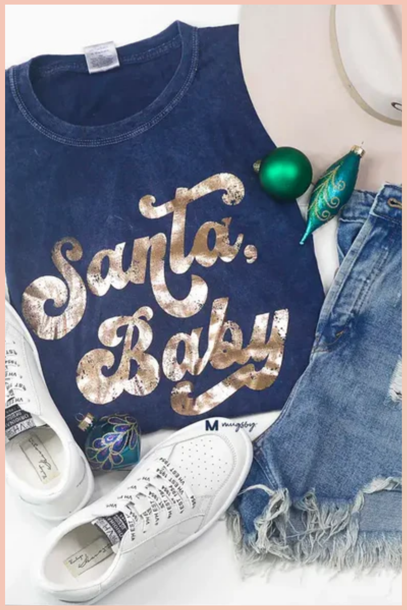 Santa Baby Christmas Graphic Tee | Navy