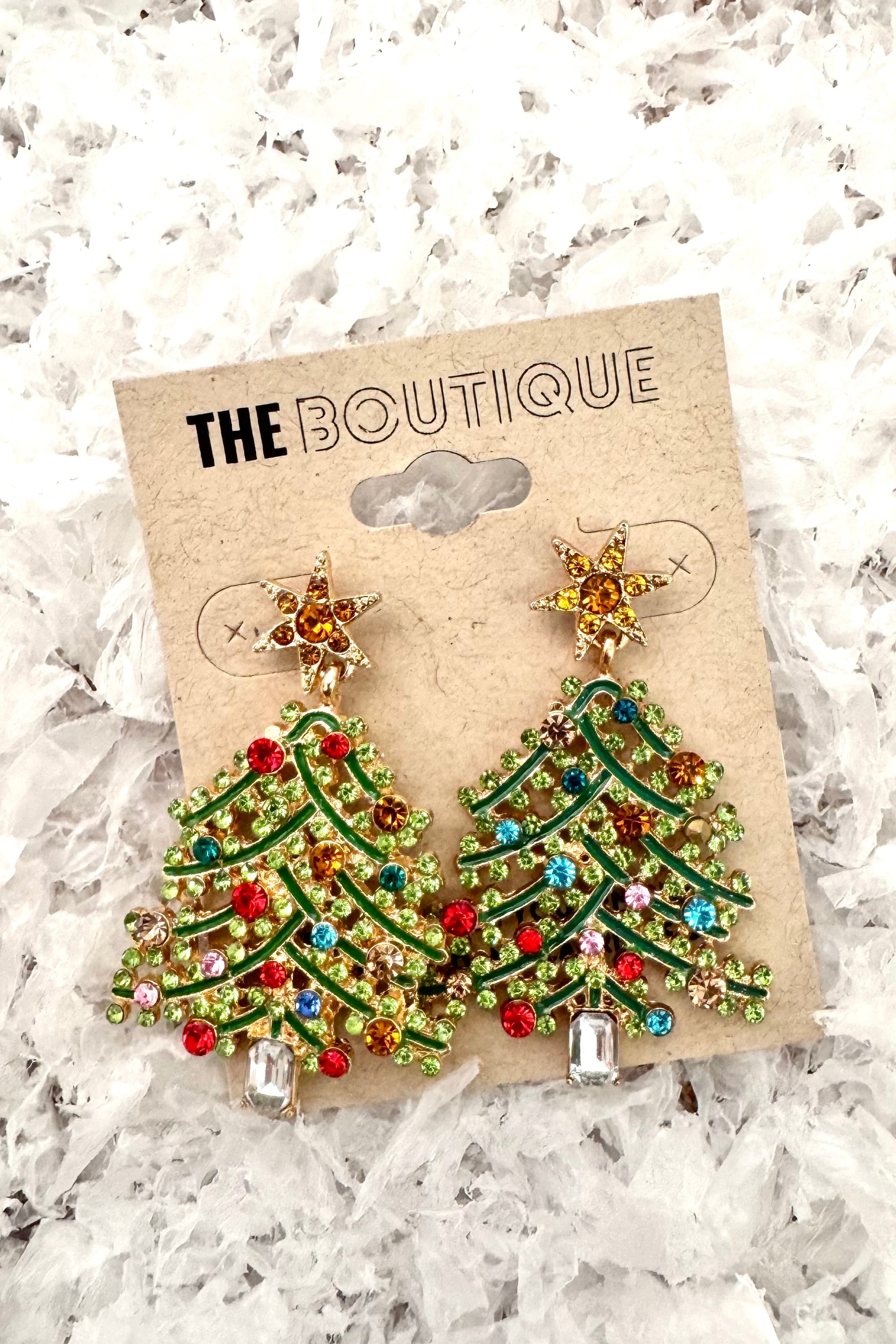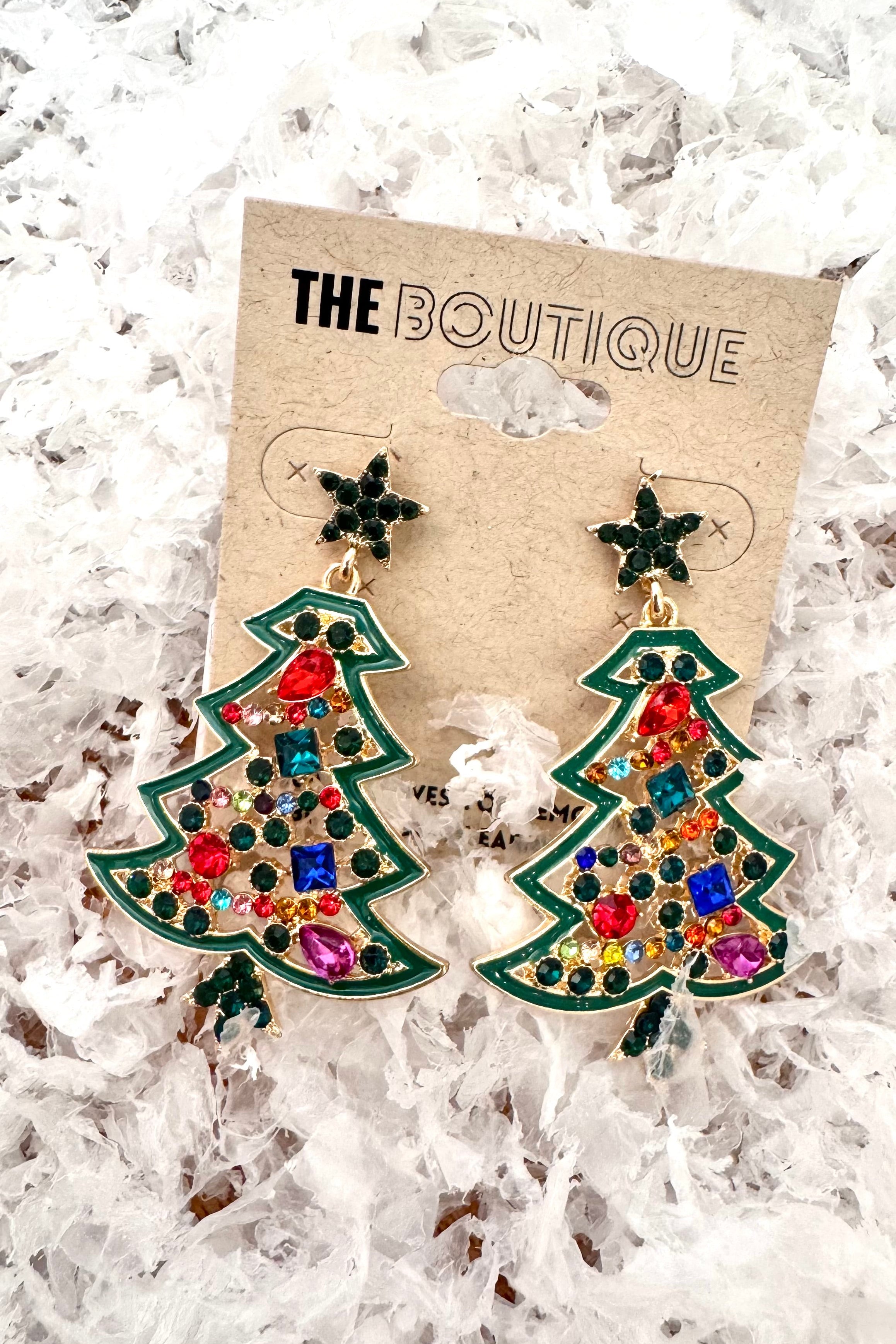 Rhinestone Christmas Tree Earrings