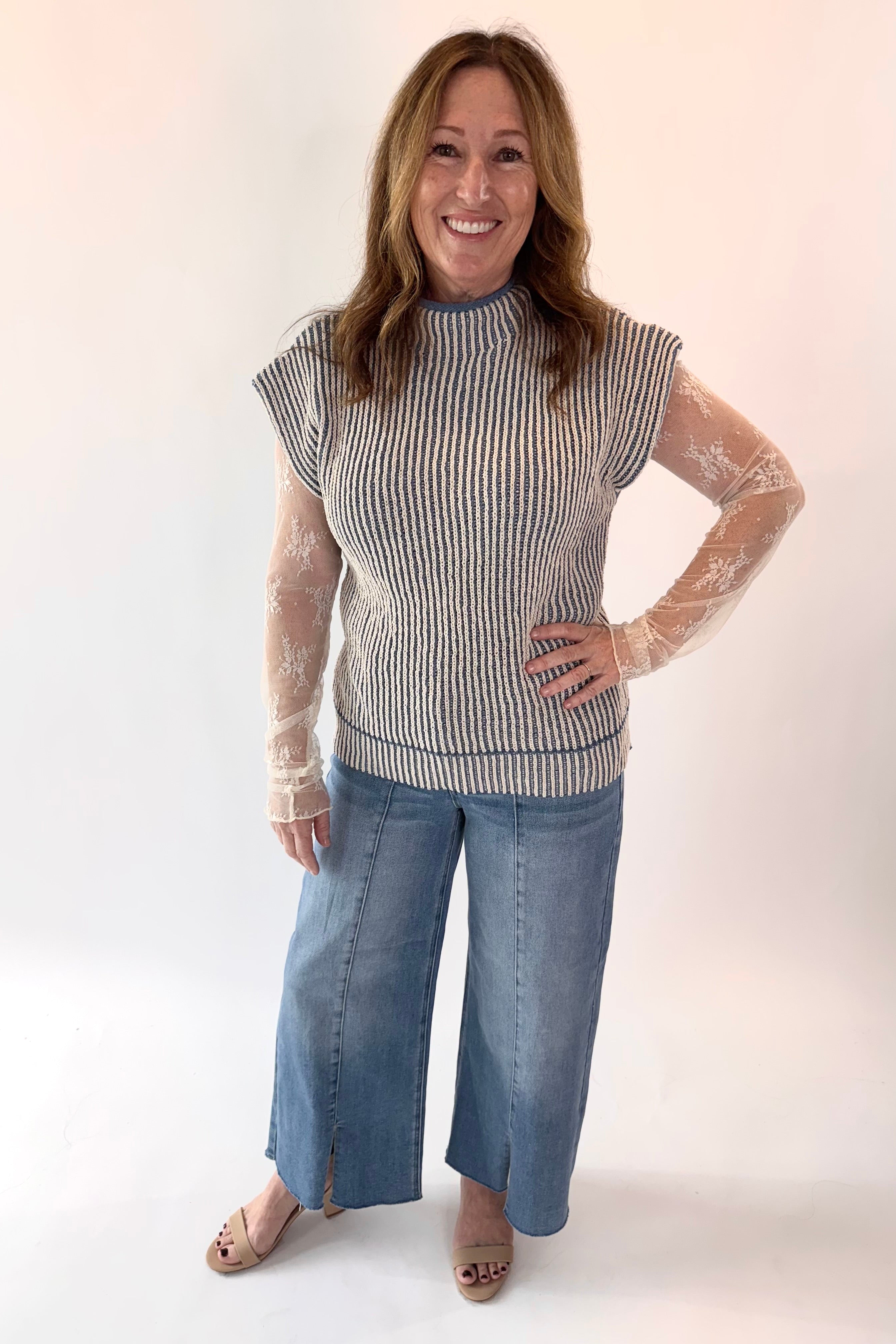 Elevate your layering game with this Two Tone Ribbed Knit Sweater Vest. Featuring a cozy mock neck and sleeveless design, it adds a fun twist to your outfit while keeping you comfortably stylish. Perfect for playfully mixing and matching with your favorite tops!