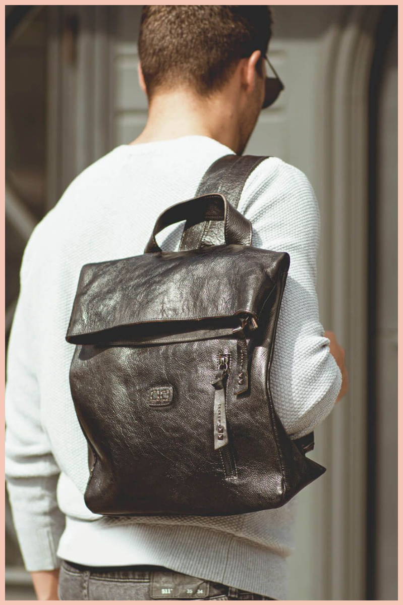 A BACKPACK FOR EVERYONE! Handsome backpack for a man or woman, HOWIE is made with beautiful hand finished leather and details that keep your items secure. Featuring a large slip pocket on the face of the bag gives you the option to carry a laptop inside, and the tablet outside for quick access. Adjustable leather straps make this bag a perfect addition to anyone's wardrobe.