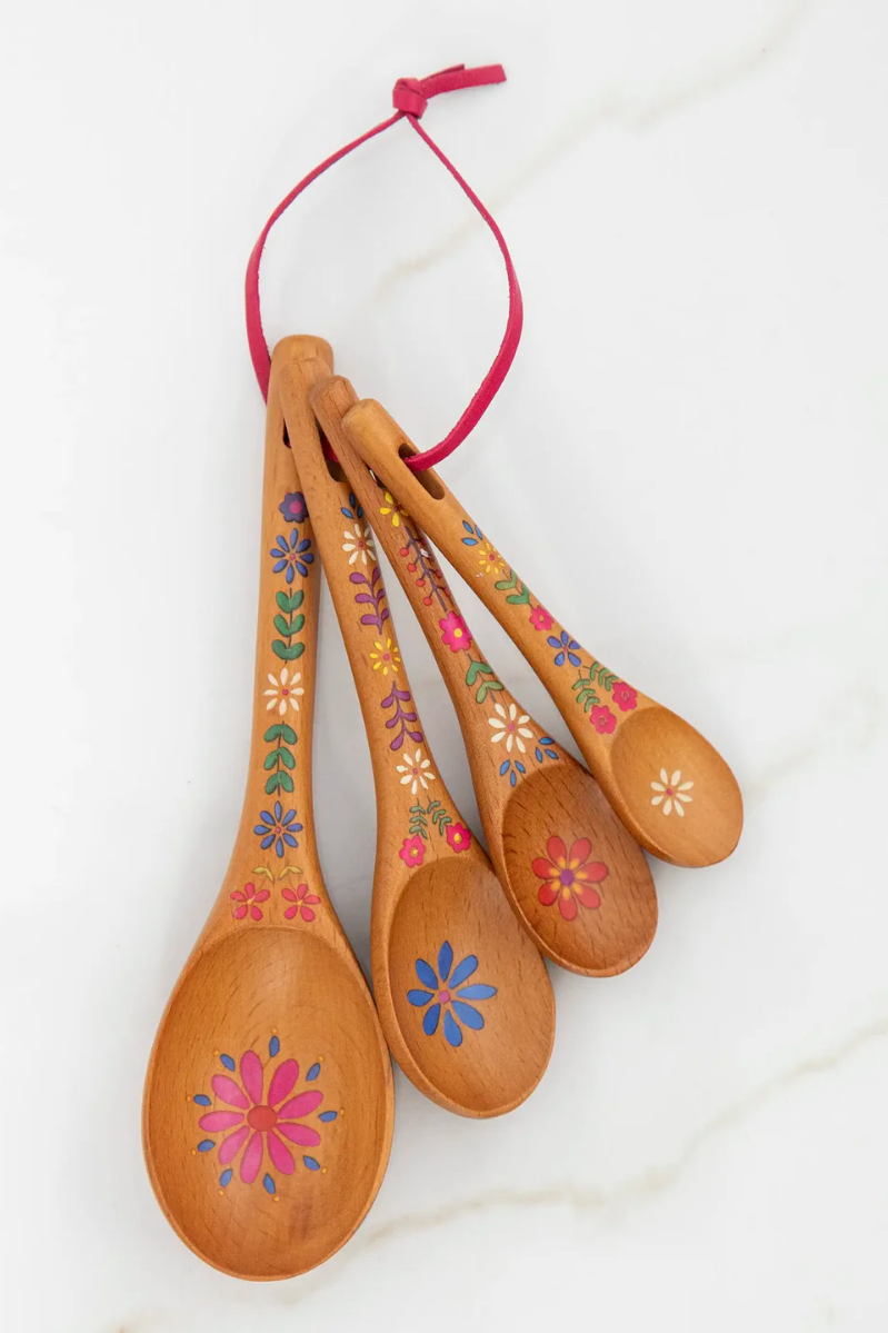 Folk Flower Wooden Measuring Spoons, Set of 4 | Natural Life