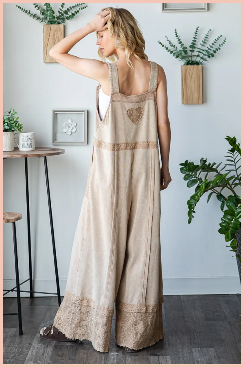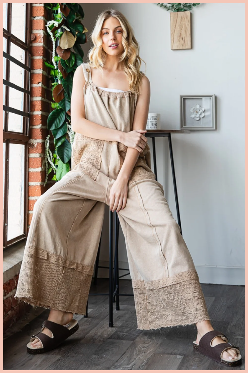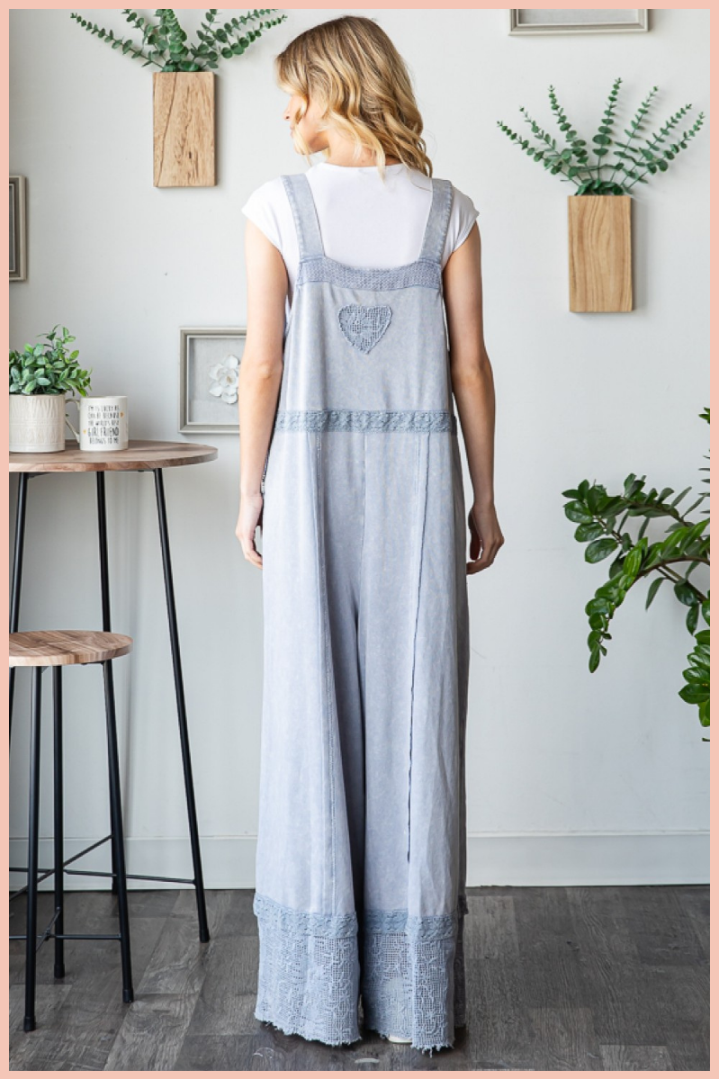 Washed Lace Hem Terry Overall