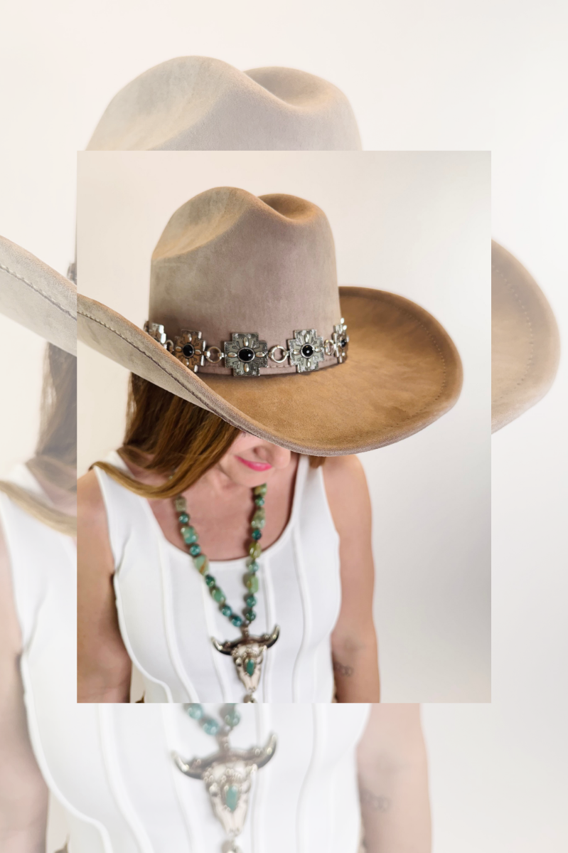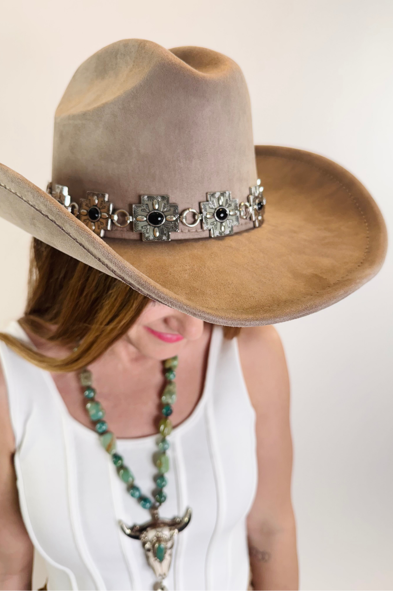 Silver + Black Aztec Cross Band Suede Cowboy Hat