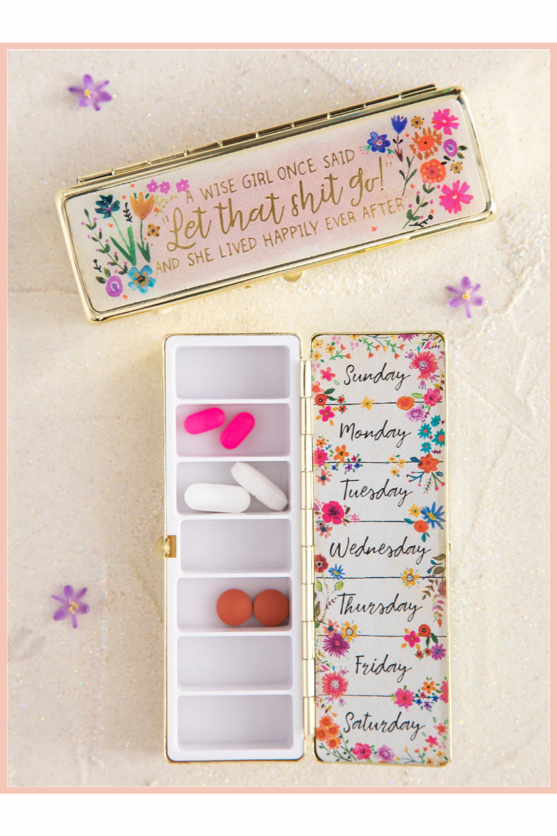 Keep your medicine organized in this Weekly Pill Organizer! It has an inspiring, "A Wise Girl Once Said..." message on the front and each day is divided on the inside. Leave it on your bathroom countertop, store in a drawer, or carry this adorable pill box in your bag!