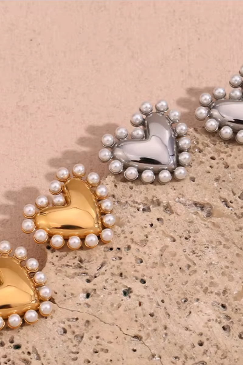 Inlaid Pearls Heart Earrings