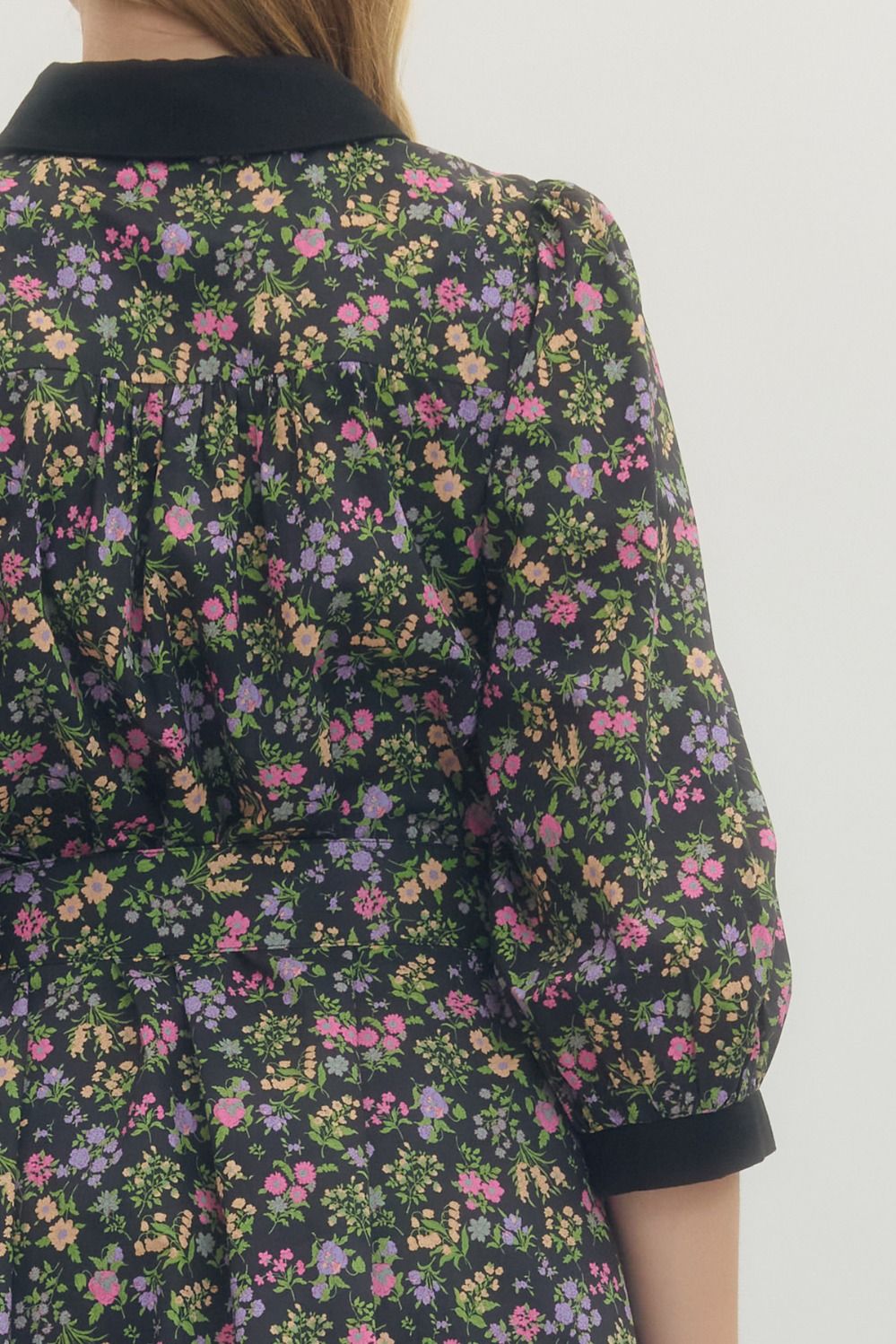 Say hello to your new favorite throw-on-and-wow dress. This floral print mini is equal parts sweet and sophisticated, featuring a button front design, flattering 3/4 sleeves, and a waist-cinching belt with a chic buckle detail.